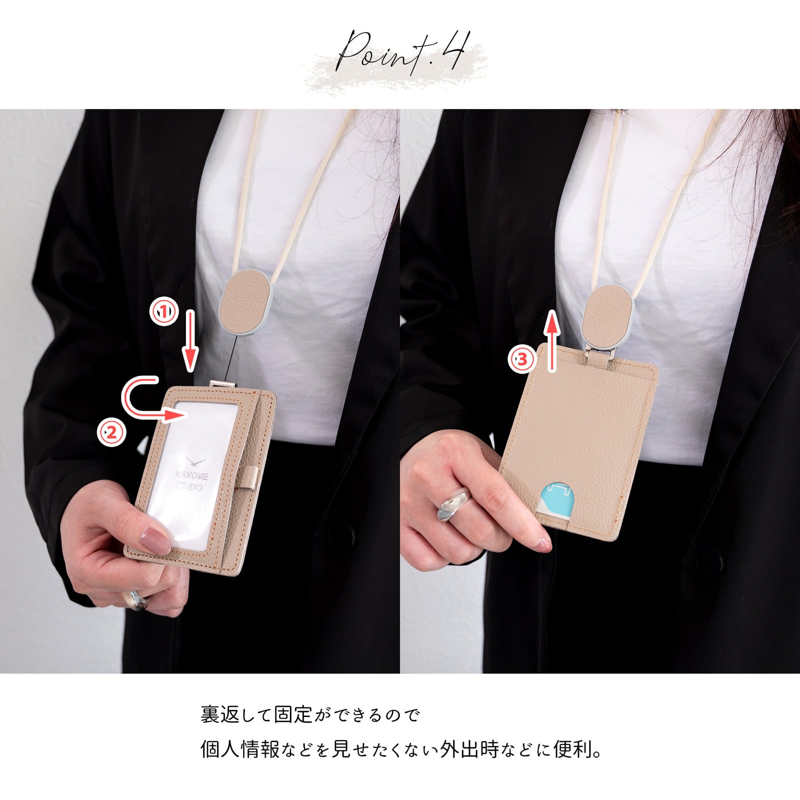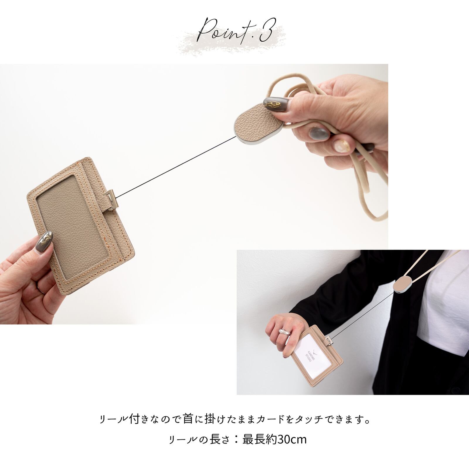 リール付きなので首に掛けたままカードをタッチできます